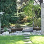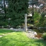 Depurato da ghiaia e piante acquatiche questo bellissimo laghetto è un piccolo gioiello racchiuso nel suo giardino. Calmo e tranquillo, è il rifugio di una famiglia di anatroccoli che lo abitano. Nascosto sotto le fronde di grandi conifere ha una profondità massima di 70 cm ed una forma irregolare; un piccolo ponticello in legno lo attraversa e conduce, chi lo visita, in un mondo magico.