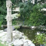 Acquatiche e palustri come Iris e Thipha latifolia animano questo specchio d’acqua con fiori scenografici e forme spettacolari, Ninfee bianche e rosa colorano la sua superficie durante tutta la stagione estiva e proteggono dal sole i tantissimi pesci rossi che vivono sotto le loro foglie.